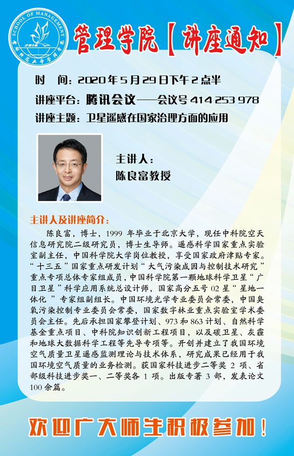 《卫星遥感在国家治理方面的应用》讲座通知