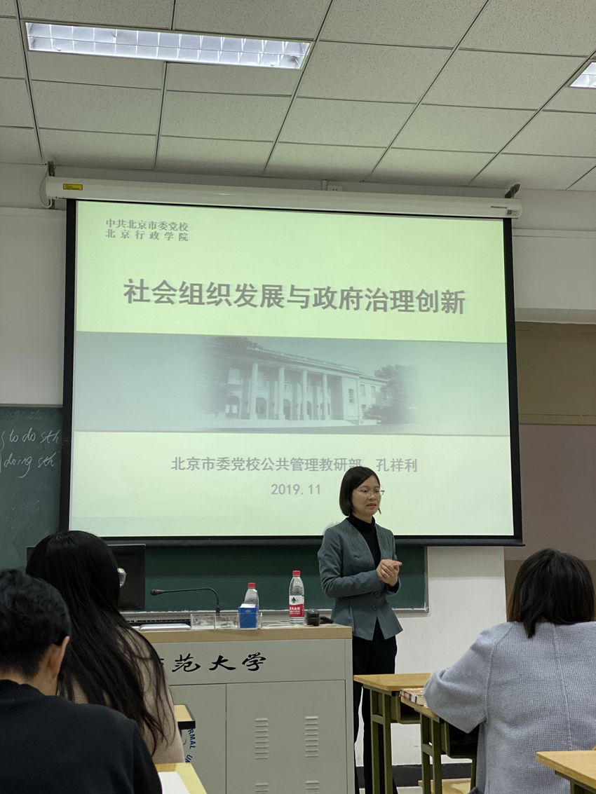 2019年11月17日下午,在北二区132教室,中共北京市委党校领导科学教研部副主任孔祥利副教授为太阳成集团tyc234cc官网2019MPA研究生献上了一场题为《社会组织发展与政府治理创新》的精彩讲座,太阳成集团tyc234cc官网公共管理硕士点行政管理二级学科负责人张丽娜副教授主持讲座。