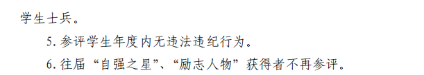 1.学生申报(11月5日-11月11日)。学生根据参评条件自愿申报,并填写《“励志人物”“自强之星”申请表》(附件 1),提交2000 字以内的个人事迹材料(格式见附件 2),院系推荐人汇总表(附件4),个人近期照片(1-3 张,JPG 格式、不小于 2M,以“院系-姓名”命名),向院系提供有关证书复印件。以上材料打包后,以“院系-姓名”命名后,与11月11日上午11点前发送至liujia@cnu.edu.cn。