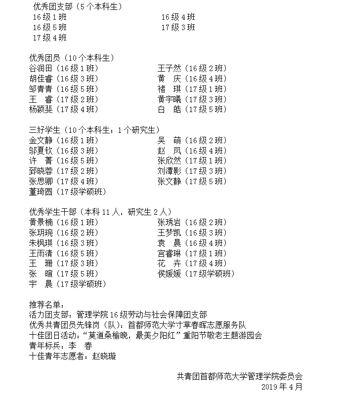 2019年五四表彰结果公示