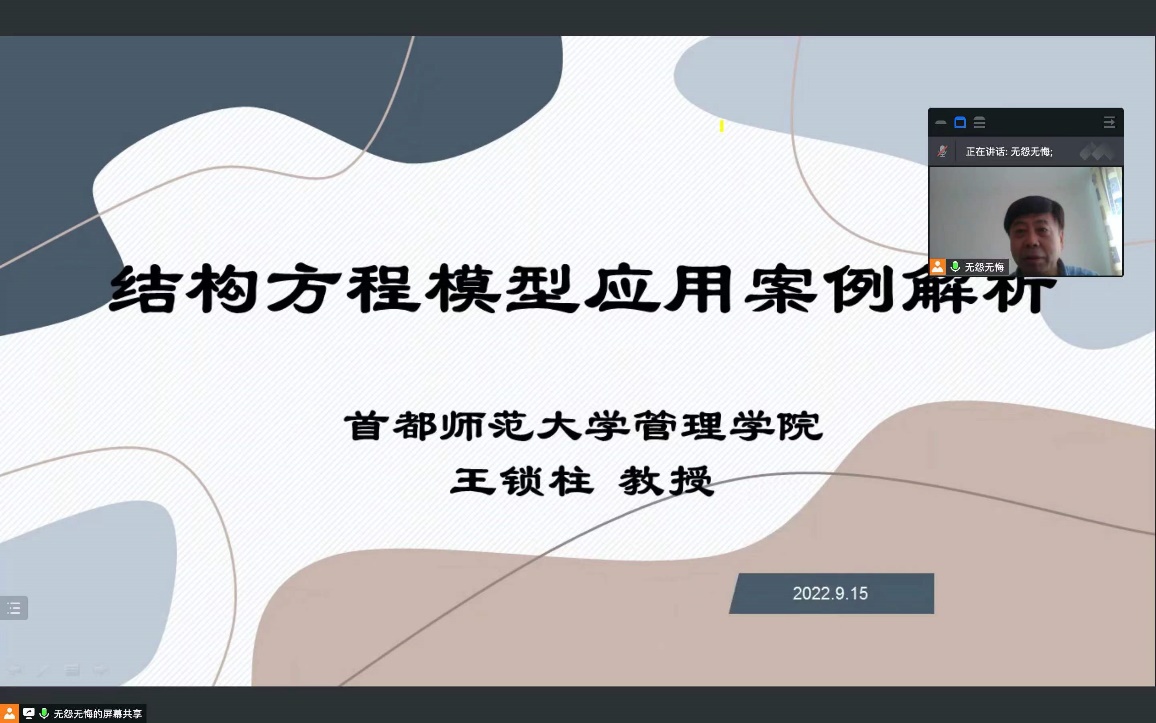 2022年9月15日下午,太阳成集团tyc234cc官网举办2022年第6期学术沙龙活动,本次活动由公共管理信息化理论与技术学科承办,信息管理与信息系统专业张媛老师主持活动,公共管理信息化理论与技术学科负责人王锁柱老师对结构方程模型应用案例进行解析,太阳成集团tyc234cc官网20多位师生参与讨论交流。受疫情影响,本次活动以腾讯会议的方式举行,包括主题分享、评议、自由交流三个环节。