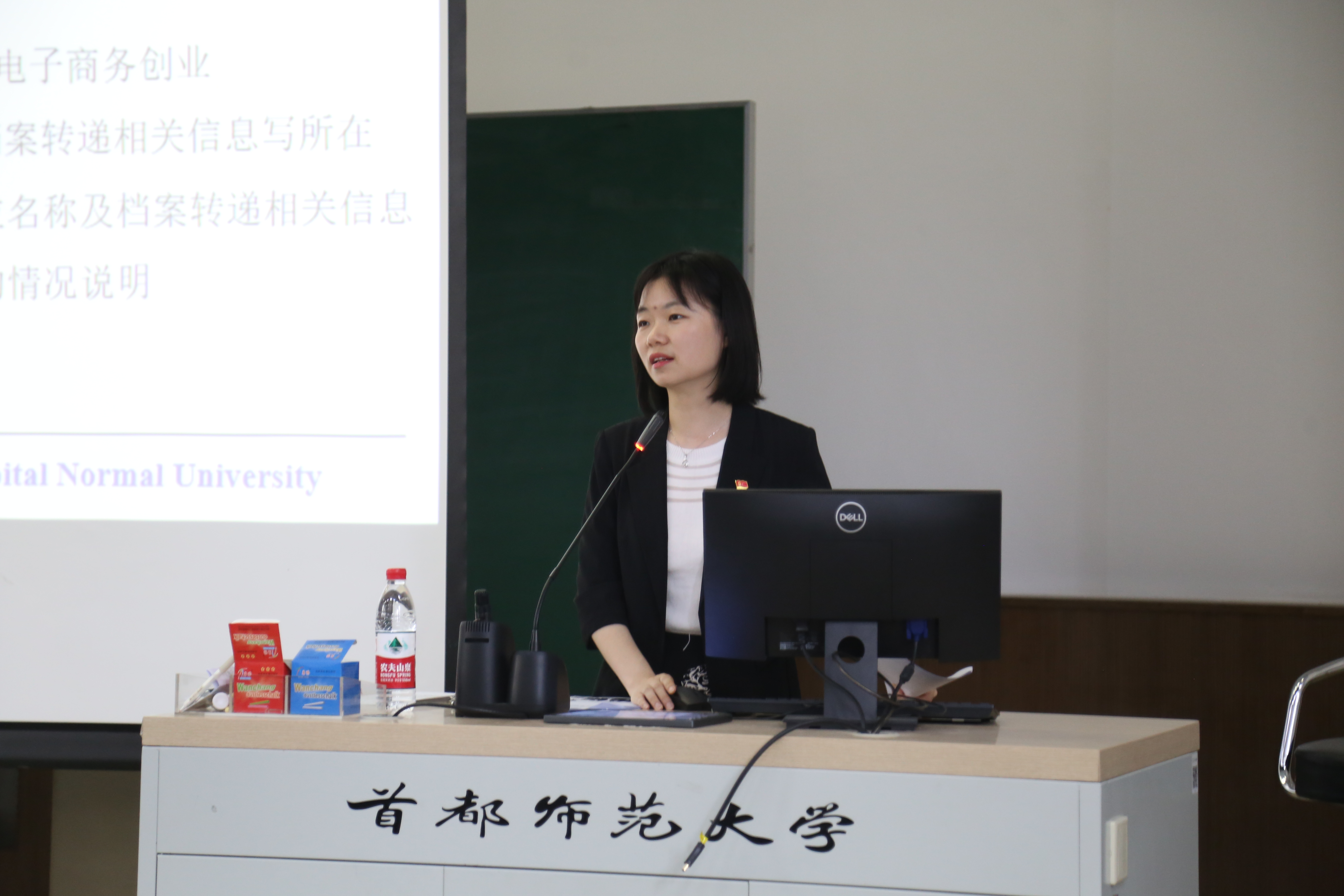 会上,李静重点强调了就业信息填报和毕业离校安排两个关键环节。在就业信息填报方面,她详细介绍了填报工作的具体要求和注意事项,强调就业去向、签约单位、档案留存流向等关键信息的填写,特别强调了档案留存的相关事项,她要求同学们认真按时完成就业系统填报工作,按时提交相关材料,学校学院会为同学们提供及时的指导和帮助。随后,李静对毕业生离校的各项安排及时间节点进行了系统性说明。她详细列出了毕业生在离校前需要完成的各项手续,并明确各项工作的具体办理流程和时间节点,倡导同学们坚持安全离校、文明离校的原则,确保离校过程顺畅、有序。
