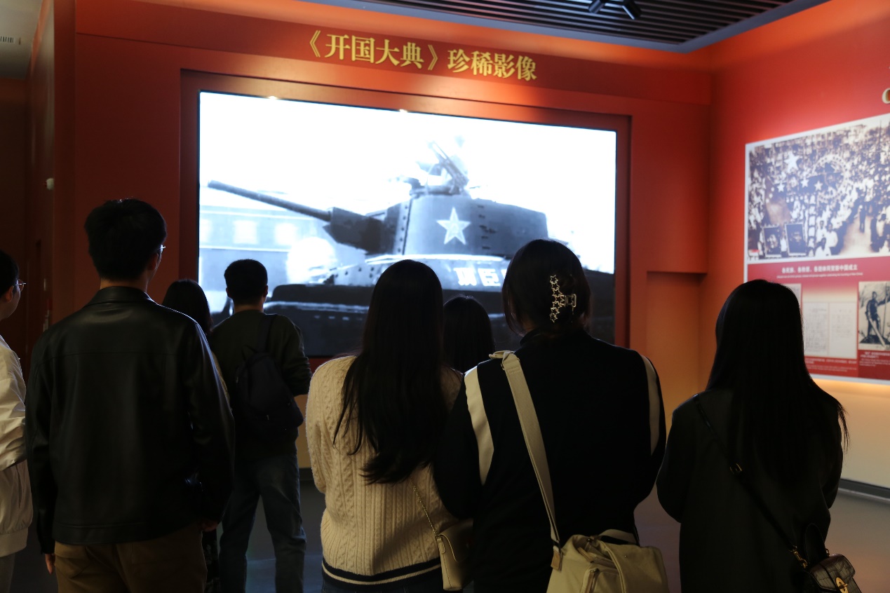 整个展厅共分为“进京赶考”、“进驻香山”、“继续指挥解放全中国”、“新中国筹建”和“不忘初心,牢记使命,永远奋斗”五个部分。展览中陈列的照片、影像、文物、手稿等,宛如一幅幅生动的历史画卷在同学们面前徐徐展开,引得大家频频驻足。