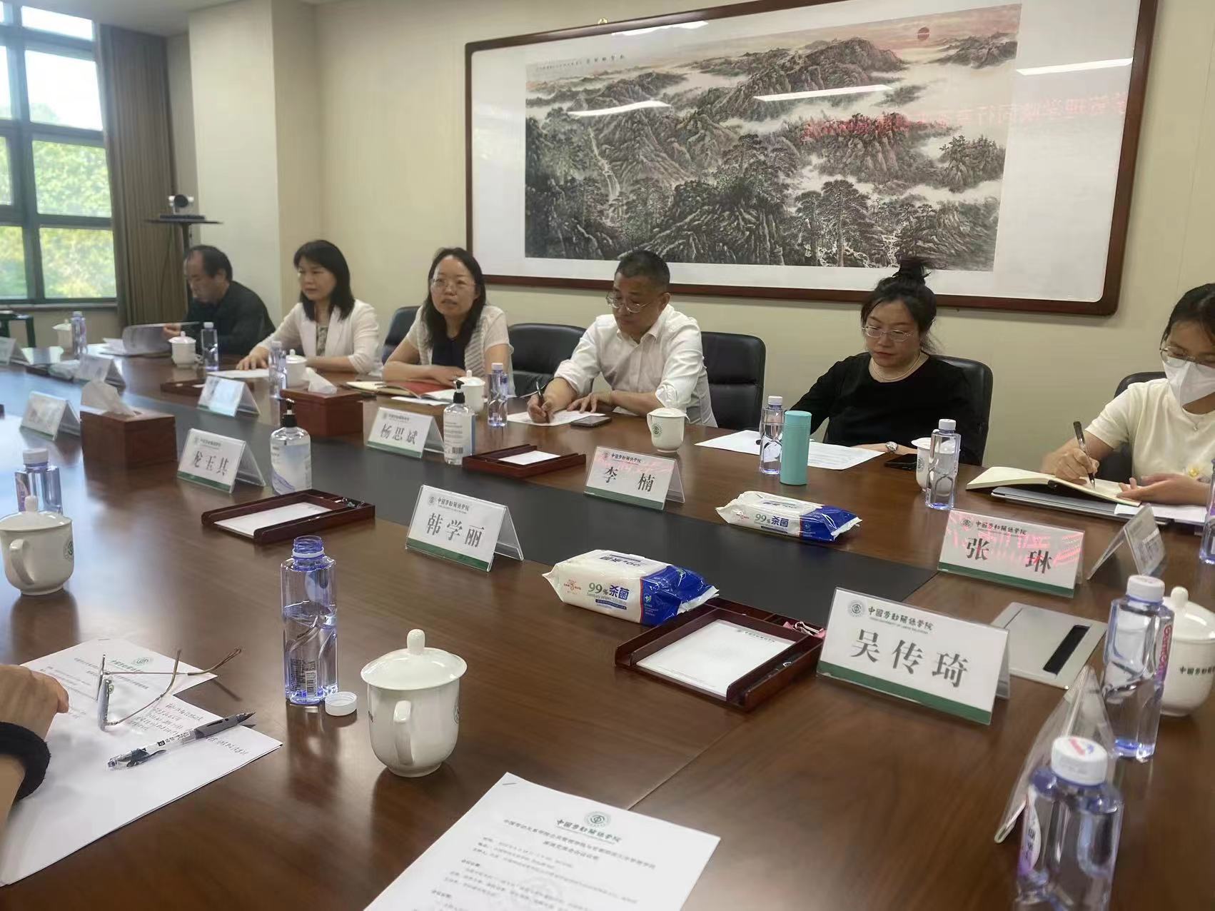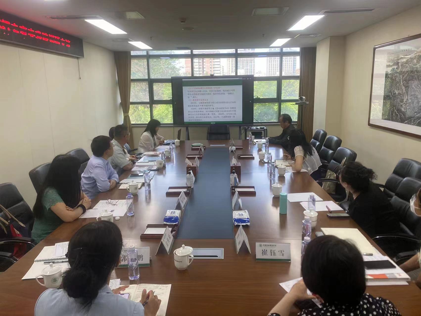 学院科研副院长龙玉其老师介绍了我院的科研学位点建设状况及社会保障学科的近年来的发展,希望今后开展两专业及学科多层次的合作。劳动与社会保障专业负责人程世勇老师介绍了我院劳动与社会保障专业建设、学生培养等方面近年来的取得的成绩及面临的问题。党支部书记韩学丽老师介绍了劳动与社会保障专业的支部党建情况。刘桂莲老师、吴传琦老师就自己的科研方向和劳动与社会保障专业的发展与中国劳动关系学院的老师们进行了深入交流。双方一致同意,下一步加强学科合作、加强课程建设合作、加强教学研究合作、加强数字治理研究方面的合作,发挥两校毗邻优势,共同推动劳动与社会保障专业和学科发展。