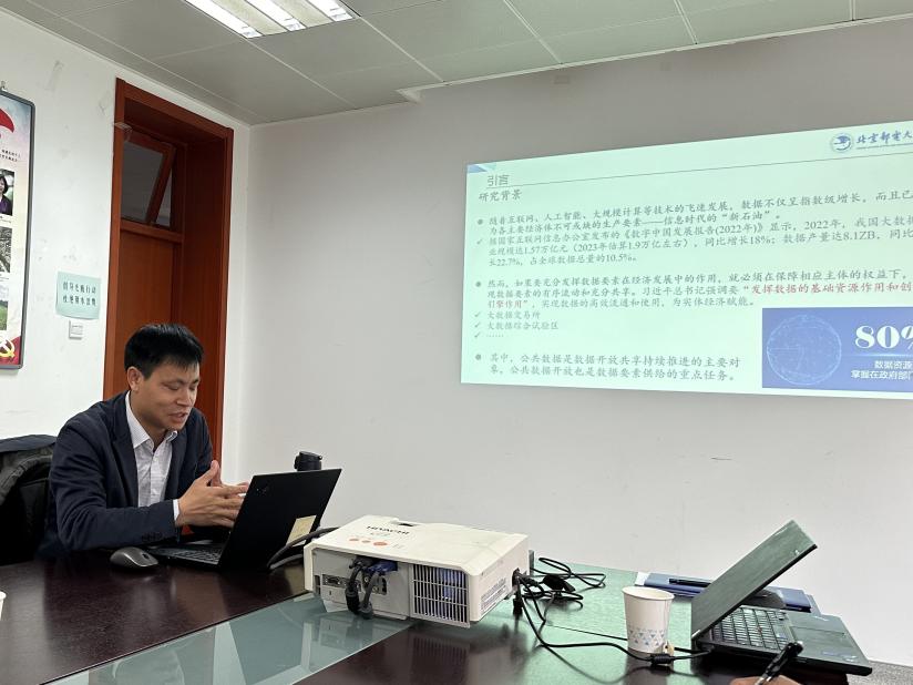 “公共数据开放会给劳动力带来怎样的影响?”及“公共数据开放是否引致就业结构数字化,带来工作任务组合优化的变革?”李宏兵教授围绕研究中的两大问题,深入剖析研究过程脉络,基于公共数据开放评价指标体系展开线索,进一步通过异质性分析,刻画公共数据开放对企业就业规模及结构的影响,为在场的师生们精彩展示了经济与公共政策跨学科融合的独特魅力。
