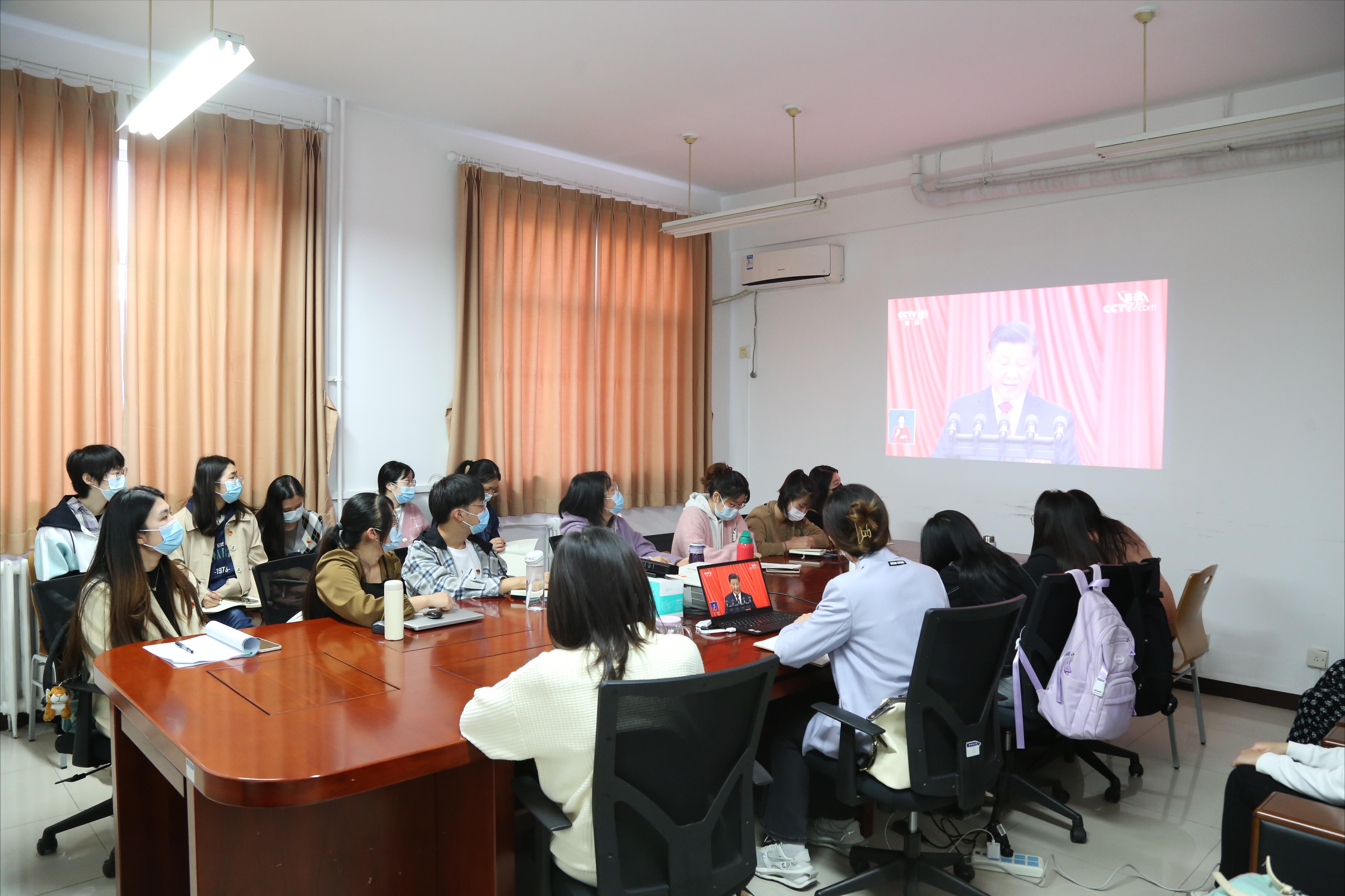 大会开幕时,全体参会人员起立共唱国歌;在习近平总书记做大会报告的过程中,与会代表认真聆听,仔细记录。开幕式后的座谈会上,参会老师、同学踊跃发言、群情振奋,大家均认为习近平总书记所作的报告总揽全局、气势恢宏,体现了百年大党立志复兴的大志向、引领时代的大担当、不负人民的大情怀、兼济天下的大格局,是一个指引全党全国各族人民迈上全面建设社会主义现代化国家新征程、向第二个百年奋斗目标进军的政治宣言和行动纲领。