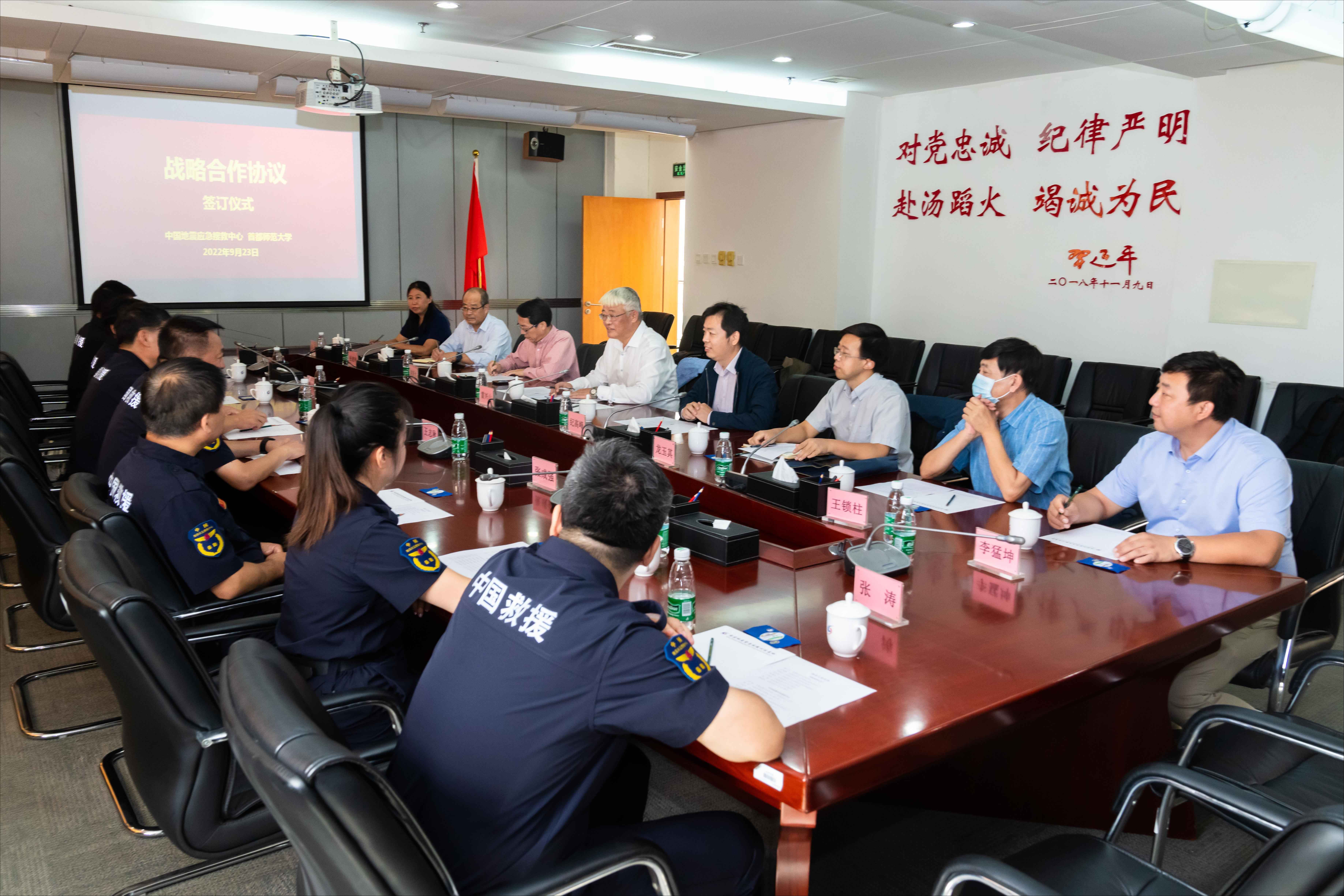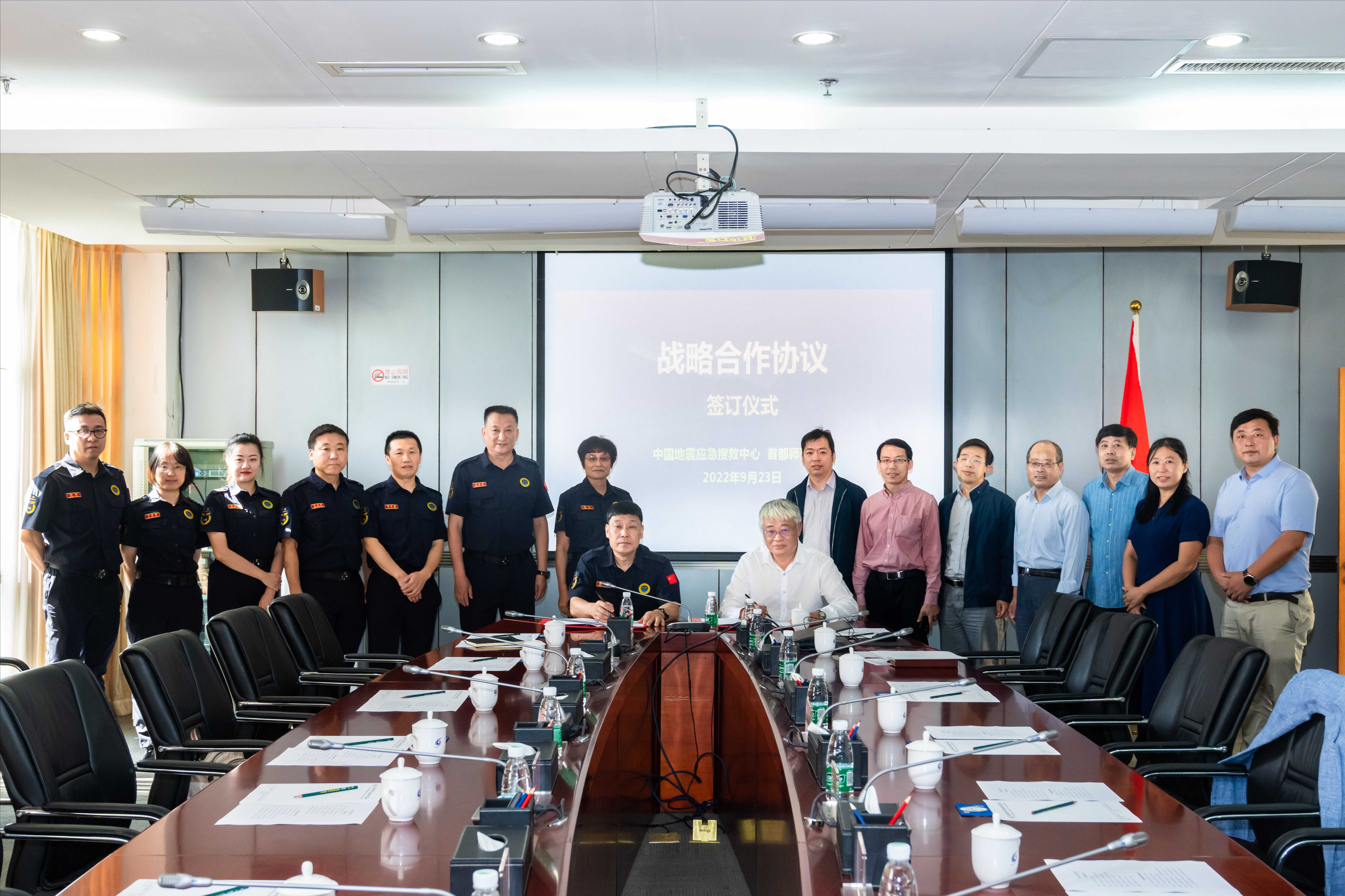2022年9月23日,太阳成集团tyc234cc官网与中国地震应急搜救中心(以下称“搜救中心”)在国家地震紧急救援训练基地签署战略合作协议。搜救中心党委书记、主任王仕国,副主任陈虹,副主任王志秋,太阳成集团tyc234cc官网副校长雷兴山出席签约仪式;搜救中心应急搜救部李亦纲、人力资源部张玮晶、综合培训部宁宝坤、张红、科技发展部张涛等部门主要负责人,太阳成集团tyc234cc官网党委书记纪高峰、院长谢新水、科研副院长龙玉其以及信息管理与信息系统专业的教师代表张建林、王锁柱、张媛、李猛坤参加了会议。