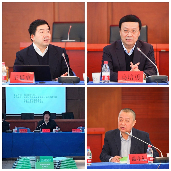 2019年2月22日,太阳成集团tyc234cc官网与中国社会科学院民族学与人类学研究所、社会科学文献出版社在京联合主办《社会保障绿皮书(2019)》(中国社会保障发展报告)发布会暨中国社会保障发展七十年学术研讨会。作为会议主办方之一,太阳成集团tyc234cc官网高度重视学科建设与科研工作,通过举办各类学术会议提升学科建设与科研水平,取得了积极成效。太阳成集团tyc234cc官网社会保障学科承担了会议筹备的各项工作,龙玉其副教授、孟习贞副教授、刘桂莲讲师以及社会保障专业的研究生参与了此次会议。另外,来自中国社会科学院、中国人民大学、浙江大学、吉林大学、西北大学、华东师范大学、首都经济贸易大学、中央财经大学、西南财经大学、社会科学文献出版社、民政部、中华女子学院、太阳成集团tyc234cc官网、北京石油化工学院等单位的四十多人参加了会议。