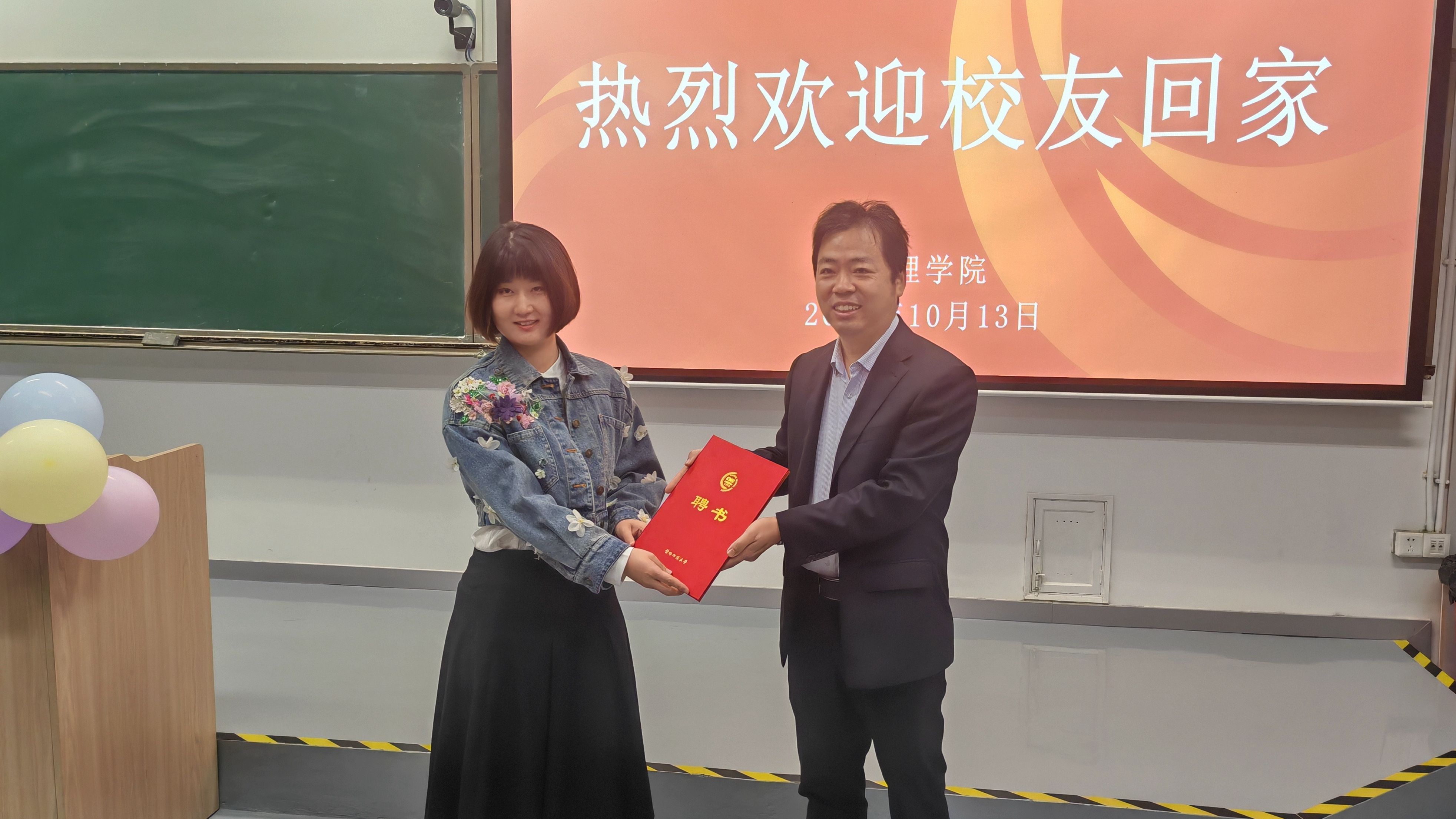 校友代表、2014届信管专业毕业生、新华社就职的井辉辉分享了自己在校期间的成长经历和对母校的感激之情,并表示将持续关注和支持学院的发展,为学院发展贡献力量。