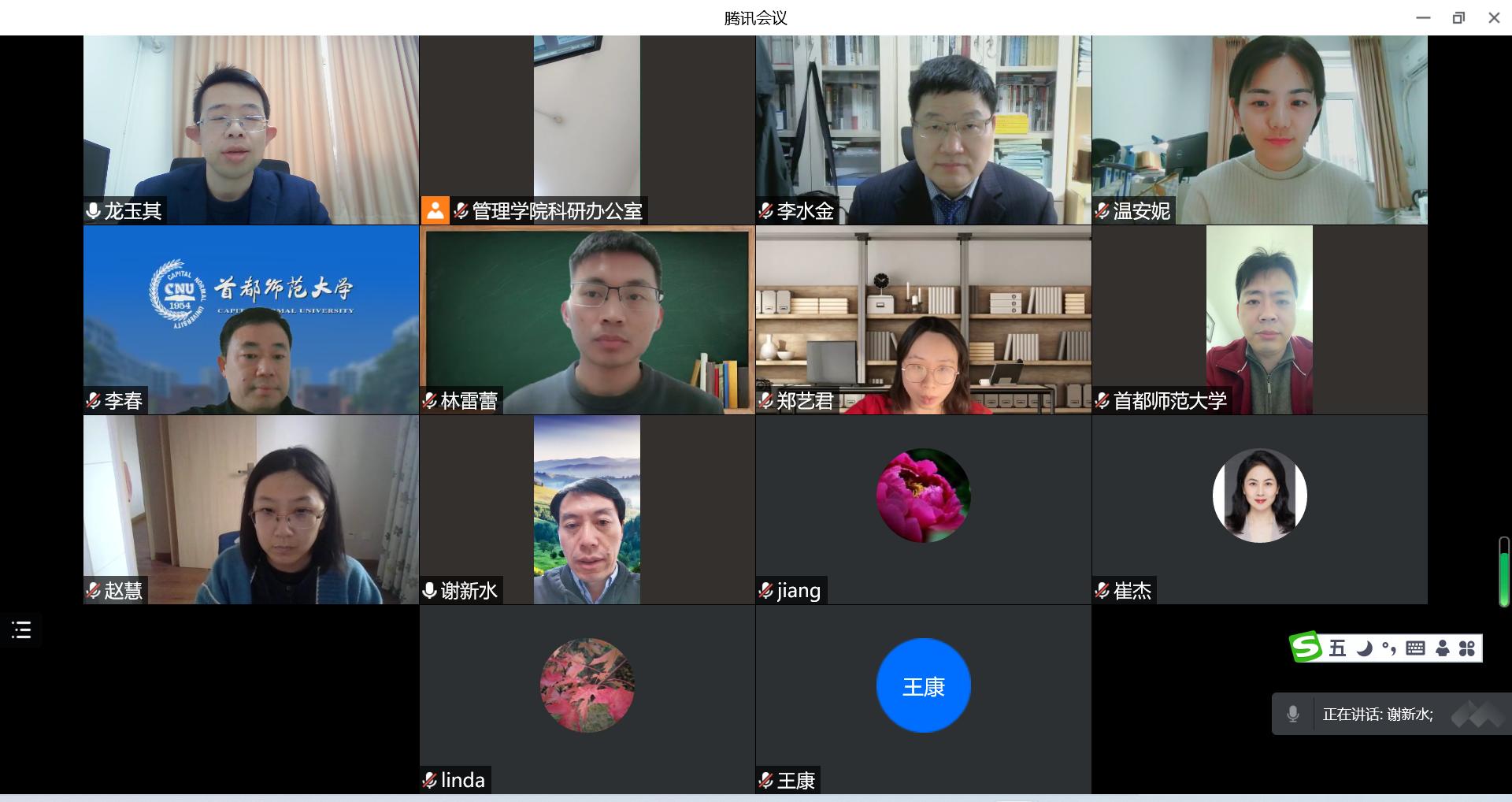 在学术沙龙举办前,老师们结合自身的研究领域充分、认真学习了《政府工作报告(2022)》中的内容。在此次学术沙龙活动中,龙玉其老师简要介绍了2022年政府工作报告中的主要内容及其特点。李水金、李春、温晓妮、郑艺君、孔琳、赵慧、林雷蕾、张媛等八位老师分别围绕“新发展格局下中国公共管理的比较优势及本土化转型”、“新时代基层治理改革”、“新发展格局下的中国企业逆向跨国并购”、“如何发展消费新业态模式”、“关于‘专精特新’企业发展的思考”、“政府职能转变与社会政策目标实现”、“流程管理视角下的政府公共服务”、“社会治理与网络舆情”等热点问题分享了自己的研究进展和主要观点。参会的老师与上述老师进行了互动交流。