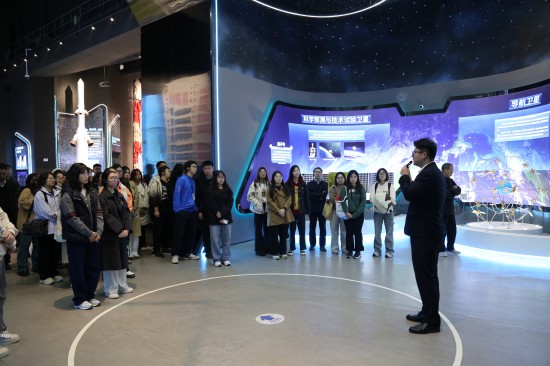 “探索浩瀚宇宙,发展航天事业,建设航天强国,是我们不懈追求的航天梦”。总书记的嘱托激励着一代代航天人前赴后继、逐梦太空。在相关人员陪同下,全体师生首先走进中国航天博物馆,参观中国航天历史、运载火箭、人造卫星、载人航天等展区。馆内珍贵的文献史料和部分实物,吸引大家纷纷驻足停留。通过展品,每一位参观者仿佛亲眼见证了一代代航天人以智慧和汗水铸就的辉煌历程。