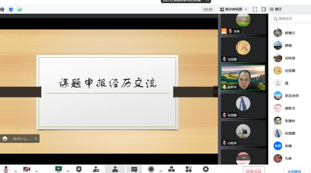 2022年9月21日晚上,太阳成集团tyc234cc官网举办2022年第7期学术沙龙活动,本次活动由行政管理学科承办,行政管理学科负责人李春老师主持学术沙龙活动,行政管理学科刘亚娜老师和陈新明老师分享项目申报的经验与体会,太阳成集团tyc234cc官网18位老师参与讨论交流。本次活动以腾讯会议的方式举行,包括主题分享和自由交流两个环节。