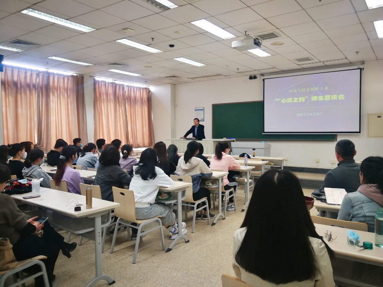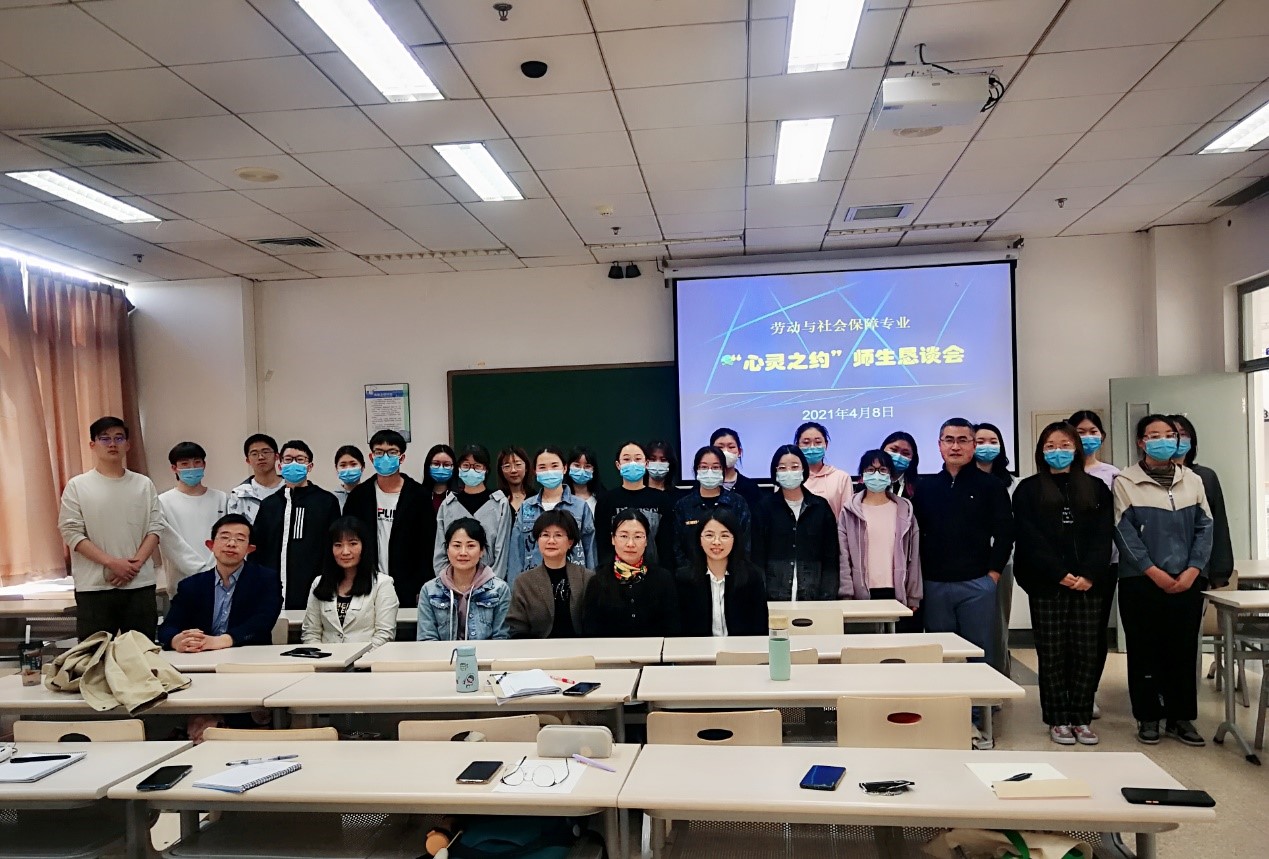 2021年4月8日下午,劳动与社会保障专业全体老师赴良乡校区举行“心灵之约”师生恳谈会,与2020级劳动与社会保障班的学生进行深入、细致的交流。本次活动旨在更好地了解学生的学习、思想、生活状况,帮助学生更好地适应大学生活,增强学生对专业的了解和认同感,引导学生树立良好的世界观、人生观、价值观。