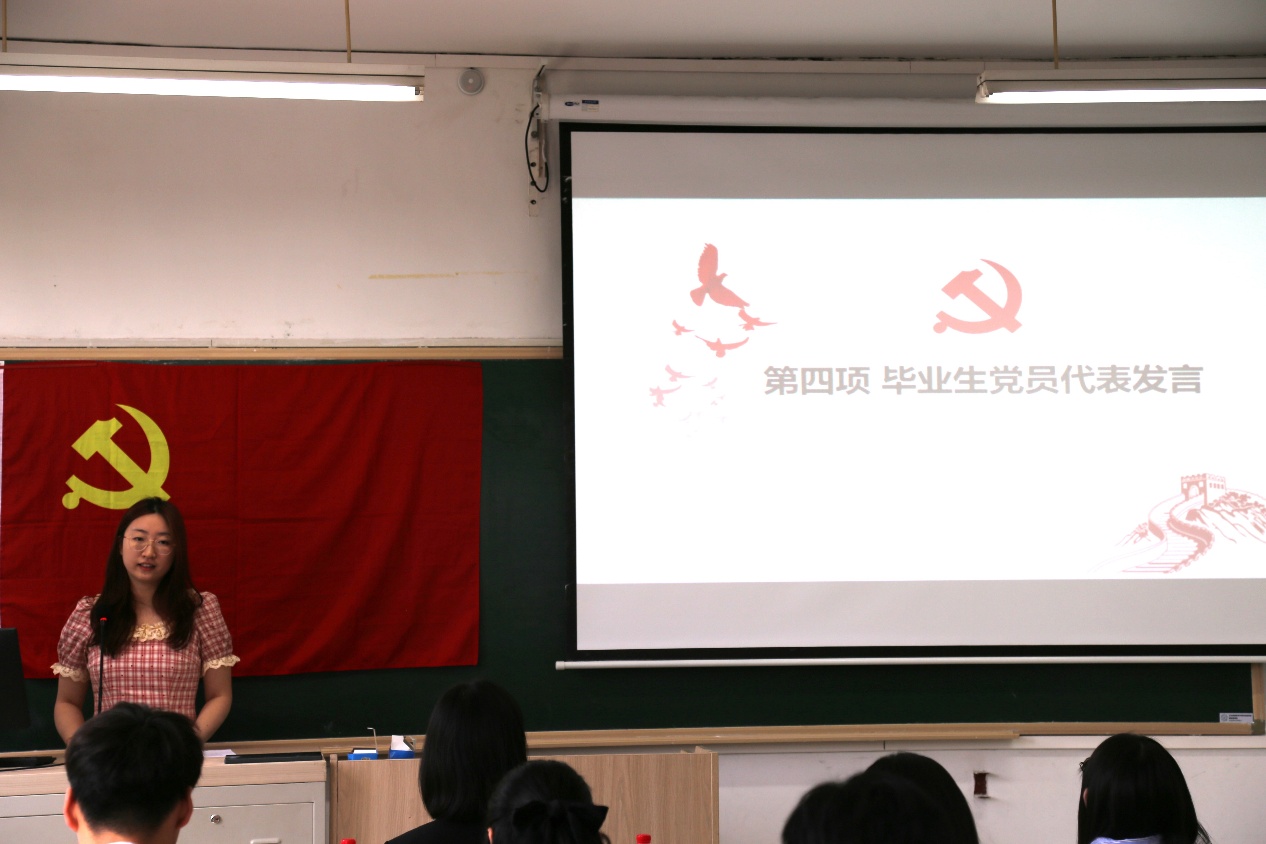 首先,师生党员全体起立,奏唱国歌,并集体重温入党誓词。入党誓词字字千钧,是每一位共产党员对党和人民作出的庄严承诺。离校前夕,毕业生党员们再次重温神圣誓言,表达了他们不忘初心,牢记使命的坚定信念。