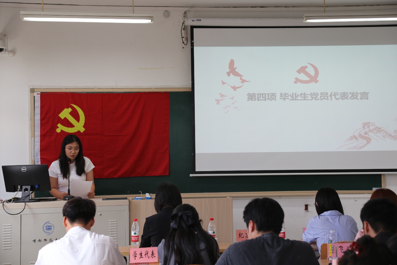 2025届研究生陈飞羽、本科生张芊芊两位同志作为毕业生代表先后发言。她们深情回顾了在党组织培养下的成长历程,向辛勤教导的恩师、提供广阔平台的学校学院致以衷心感谢,更感恩党组织的多年培养,正是这些力量将她们锤炼成有理想、有担当的青年党员。面向未来,她们决心将党员的优良作风融入学习与工作,勇挑重担,以实际行动在各自岗位上贡献智慧力量。