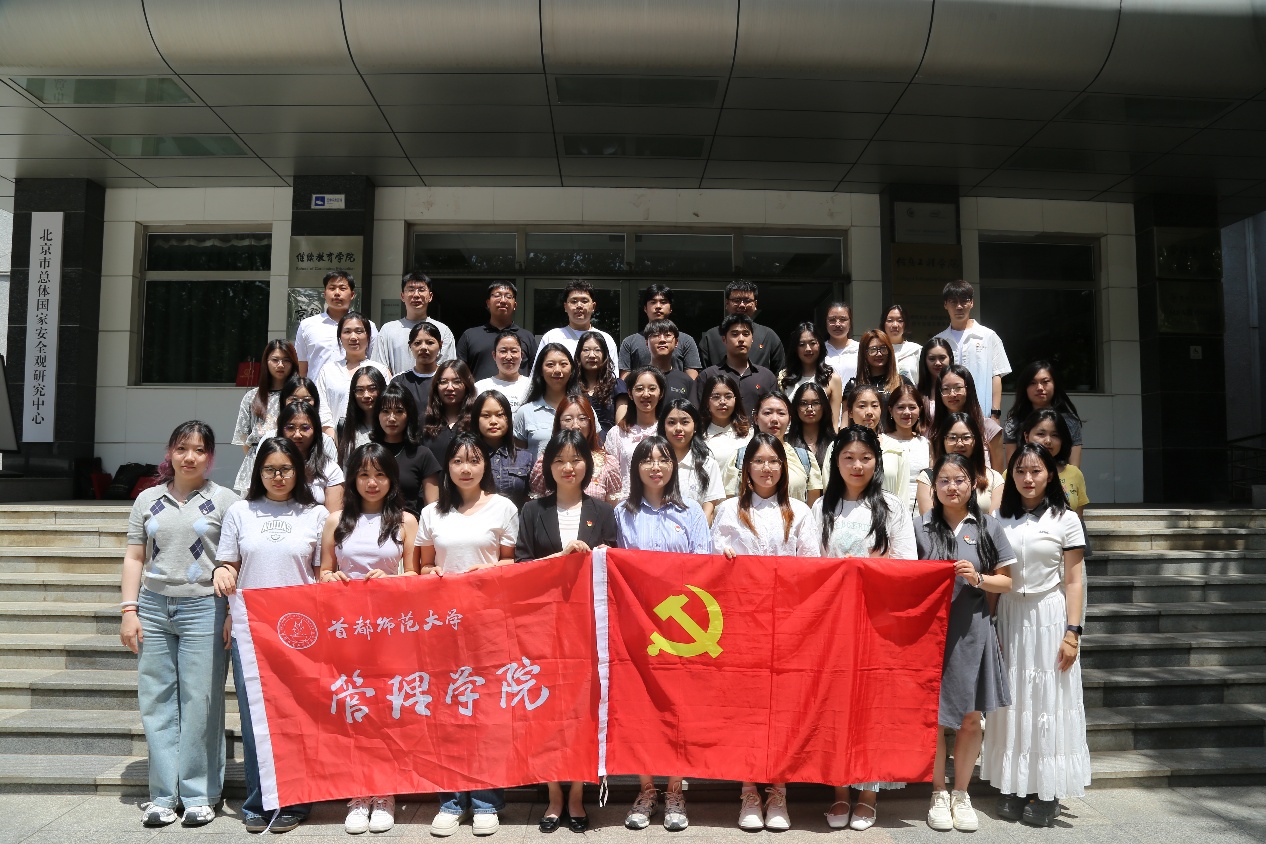 李静向毕业生党员提出四点期望:永葆党员本色,牢记第一身份;强化理论武装,筑牢思想根基;练就过硬本领,勇担时代重任;严守纪律规矩,永葆清廉本色。李静、孙文敏为毕业生党员代表佩戴党徽,颁发学院党委精心准备的纪念品。孙文敏为毕业生党员介绍了党组织关系转接各项事宜,提醒各位同学务必留意各项政策细则,密切关注时间节点,确保及时、顺利完成组织关系转接工作。最后,全体师生党员高唱《国际歌》,会议在庄严的歌声中落下帷幕。