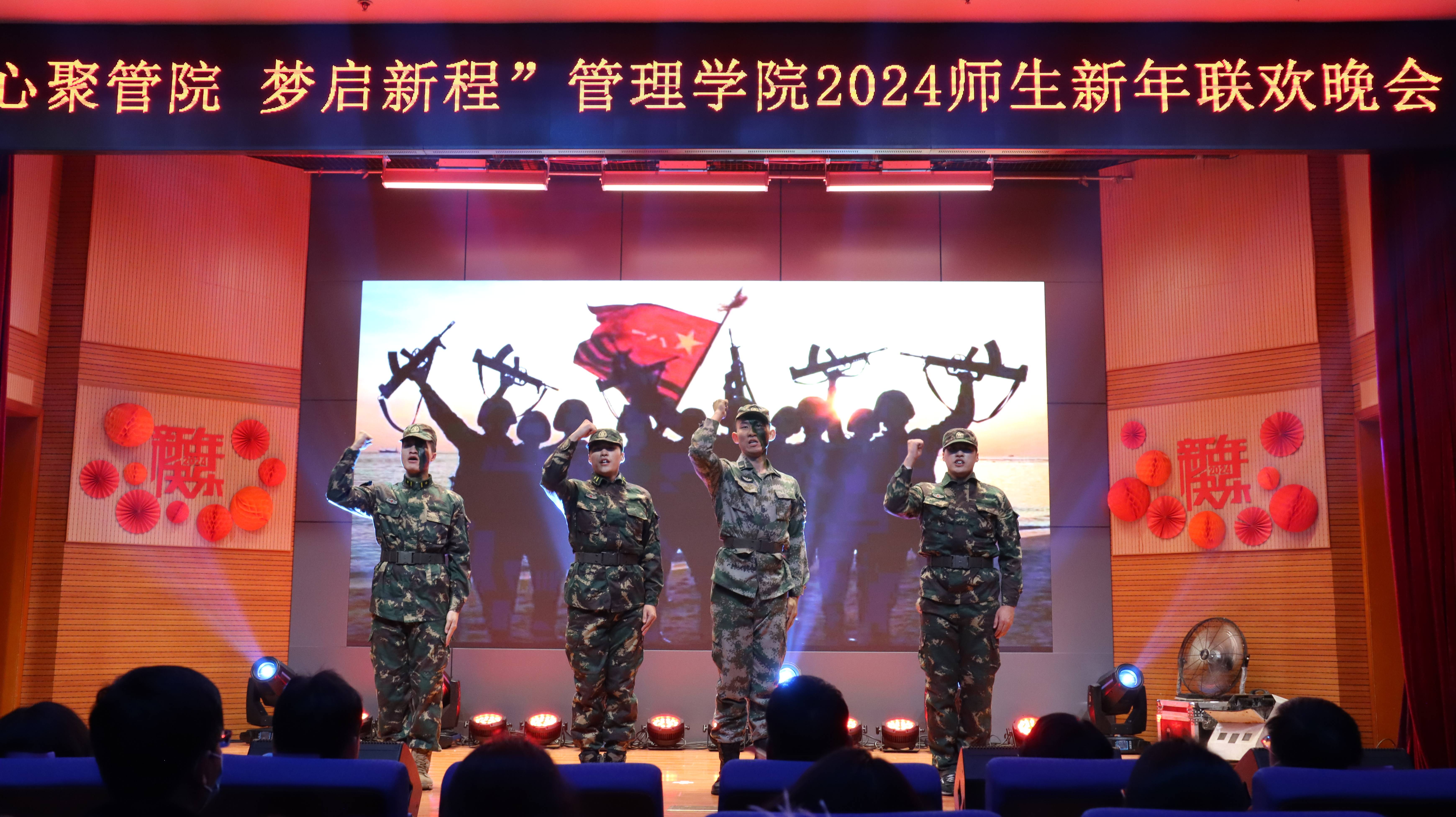 本次师生新年联欢晚会以“心聚管院 梦启新程”为主题,分为“聚心声”“展欣图”“启新程”三个篇章。晚会在活力四射的健美操中拉开序幕。师生的歌曲表演《样》《等你下课》《稻香》《江南》《生活因你而火热》等青春洋溢、洋洋盈耳;教师子女的演唱充满童趣、余音绕梁;师生合唱《相亲相爱一家人》《明天会更好》《我们都是追梦人》等热烈欢快、充满温情;退伍大学生士兵带来的战术表演《退伍不褪色》惊险震撼、扣人心弦;舞蹈表演灵动曼妙、翩翩动人;昆曲《游园》、器乐朗诵《临安遗恨》婉转悠扬、唯美动听;原创小品《淋雨一直走》《莫欺少年穷》结合当下大学生的心理健康现状及大学生网络诈骗等话题,生动有趣、寓教于乐。节目种类丰富,精彩纷呈,引来阵阵掌声。“寻找冠鲤”“鲤鱼龙门”抽奖互动环节,更是将现场氛围推向高点,管院师生欢聚一堂,其乐融融。