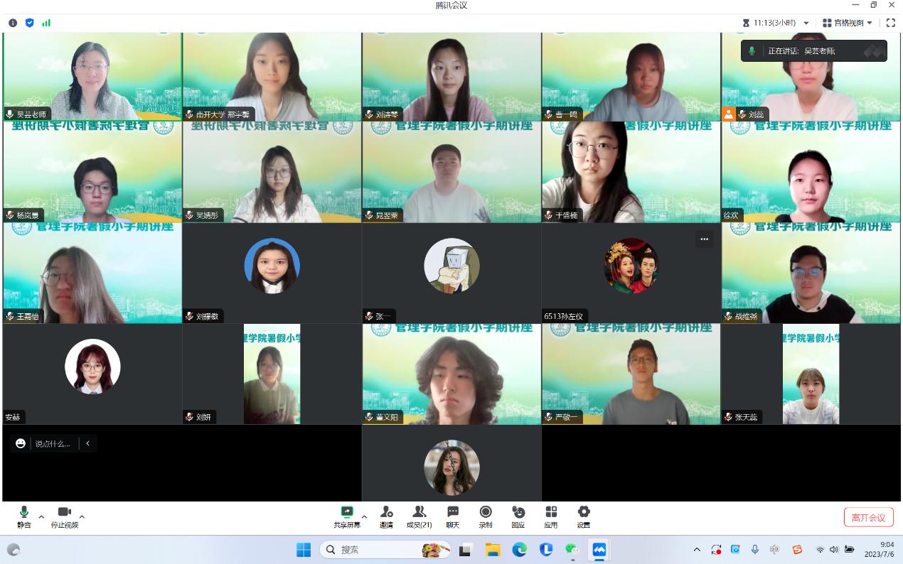2023年7月6日上午,南开大学周恩来政府太阳成集团tyc234cc官网 2020 级本科生、2022 年清华大学中国公共政策案例分析大赛一等奖获奖者邢宇馨同学应邀为太阳成集团tyc234cc官网2022级公共事业管理专业学生做了《公共管理案例大赛经验分享》的学术讲座。公共事业管理专业负责人吴芸副教授主持了本次讲座。