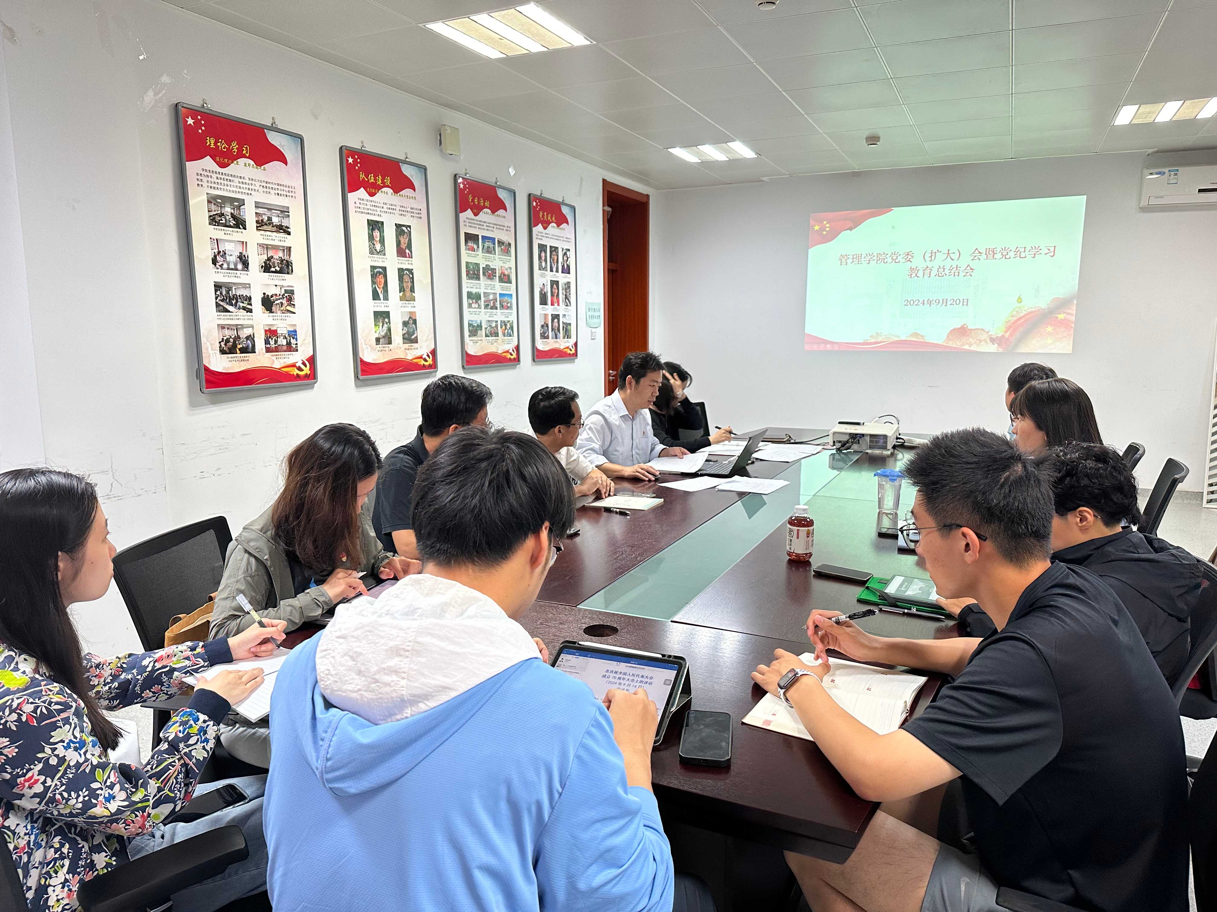 会议强调,学院党委将进一步巩固拓展党纪学习教育成果与认真学习贯彻党的二十届三中全会精神、全国教育大会精神和学校第十四次党代会精神紧密结合,持续健全经常性和集中性相结合的纪律教育长效机制,谋深抓实以党的严明纪律规矩助推全面从严治党,营造风清气正的政治生态和育人氛围;同时,在推动高质量党建引领高质量发展上持续用力,分发挥管理学科专业优势,着力推进国家安全、新质生产力、改善民生福祉、城市治理等经济社会重点工作的深入研究,不断推动党建与业务的深度融合联动,把党的政治优势和组织优势有效转化为治理效能、发展优势,用发展成果更好巩固提升党的建设质量。