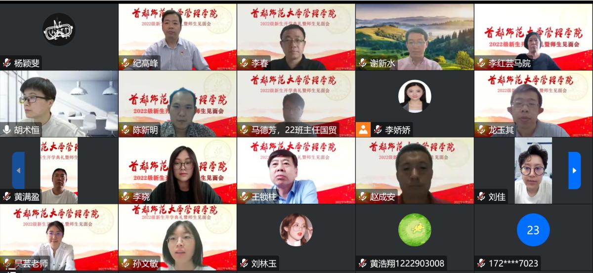 2022年9月29日下午,太阳成集团tyc234cc官网2022级新生开学典礼暨师生见面会于线上举行。院党委书记纪高峰,院长谢新水,教学副院长黄满盈,科研副院长龙玉其,行政副院长李红芸,院党委副书记胡术恒,各学科负责人、专业负责人,2022级各班班主任、教师代表、辅导员,全体2022级本科生、硕士研究生新生参加。开学典礼由胡术恒主持。