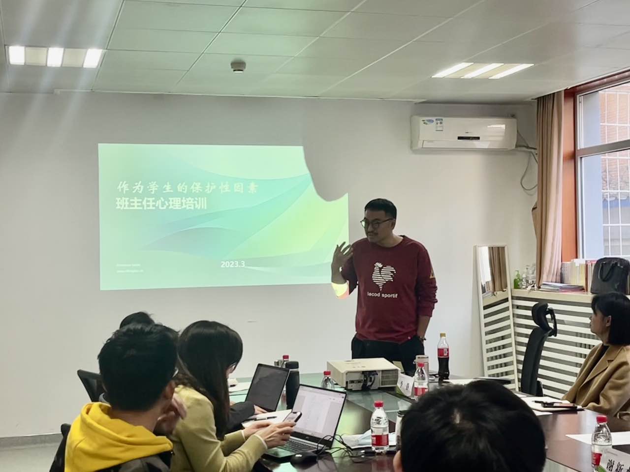 赵凯以作为学生的保护性因素为主题进行心理专题培训。他以问答互动形式展开话题,结合多年工作经验,用详实案例和数据向班主任介绍如何正确评估大学生心理健康状态,有效应对危机事件,给出具有可操作性的应对策略。