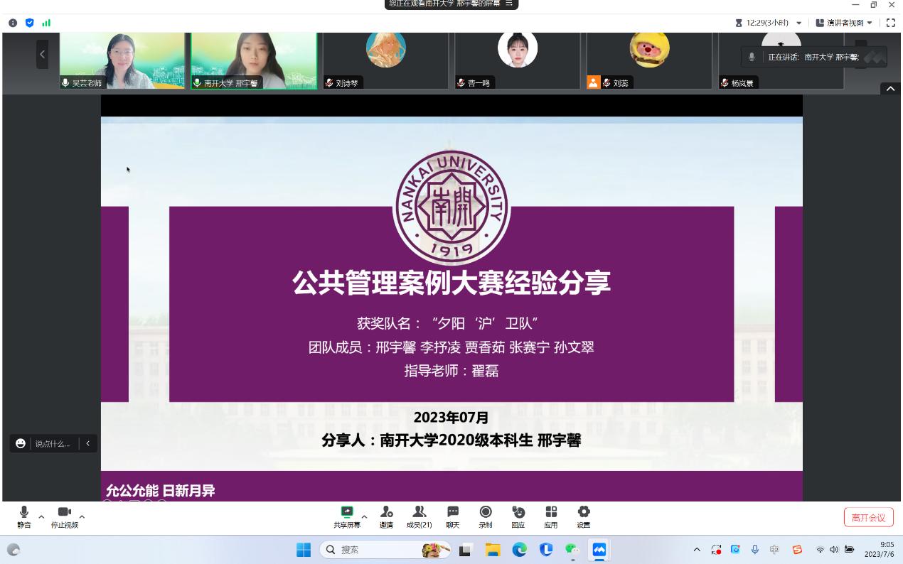 学术讲座:南开大学本科生获奖者邢宇馨《公共管理案例大赛经验分享》
